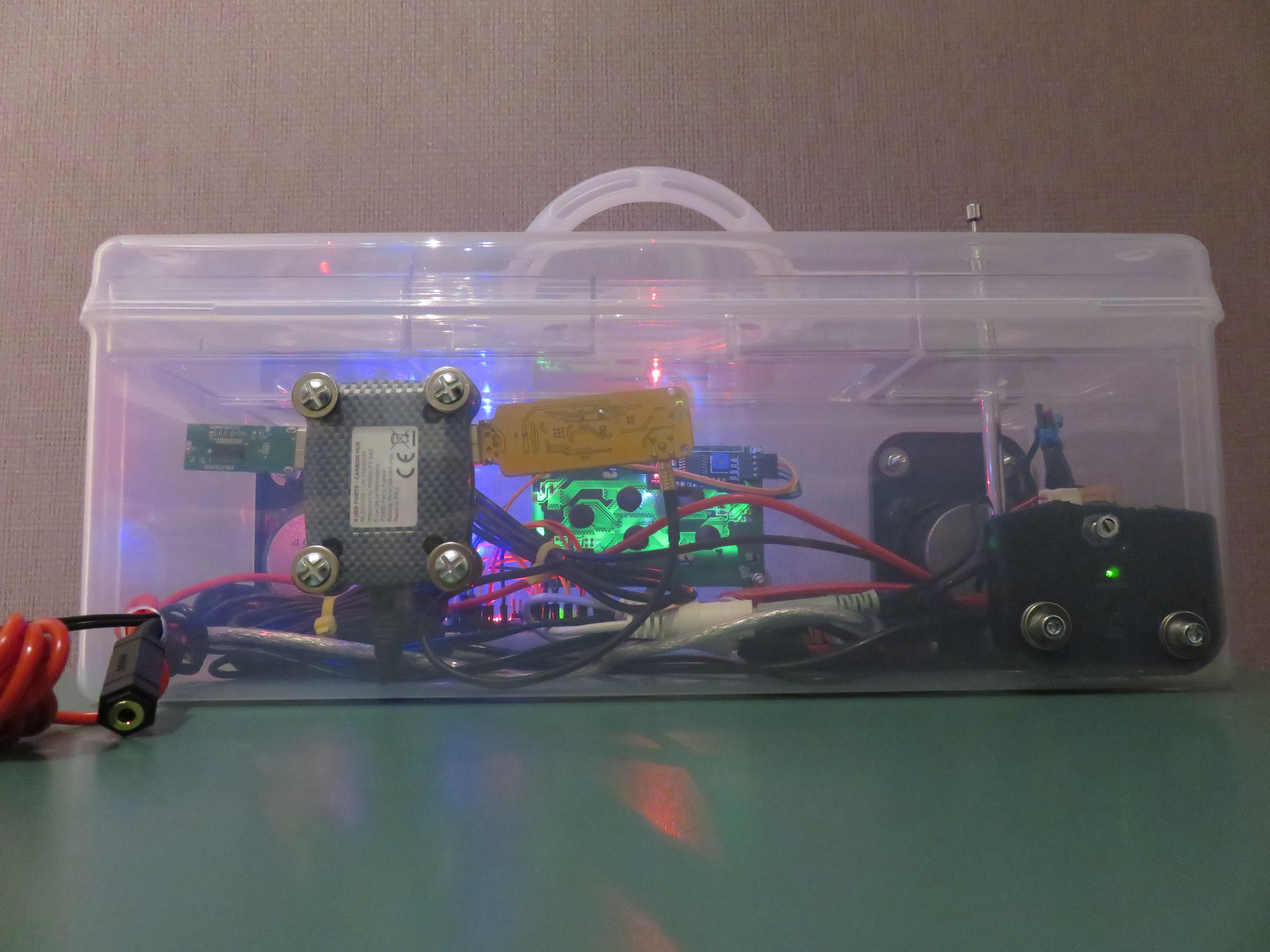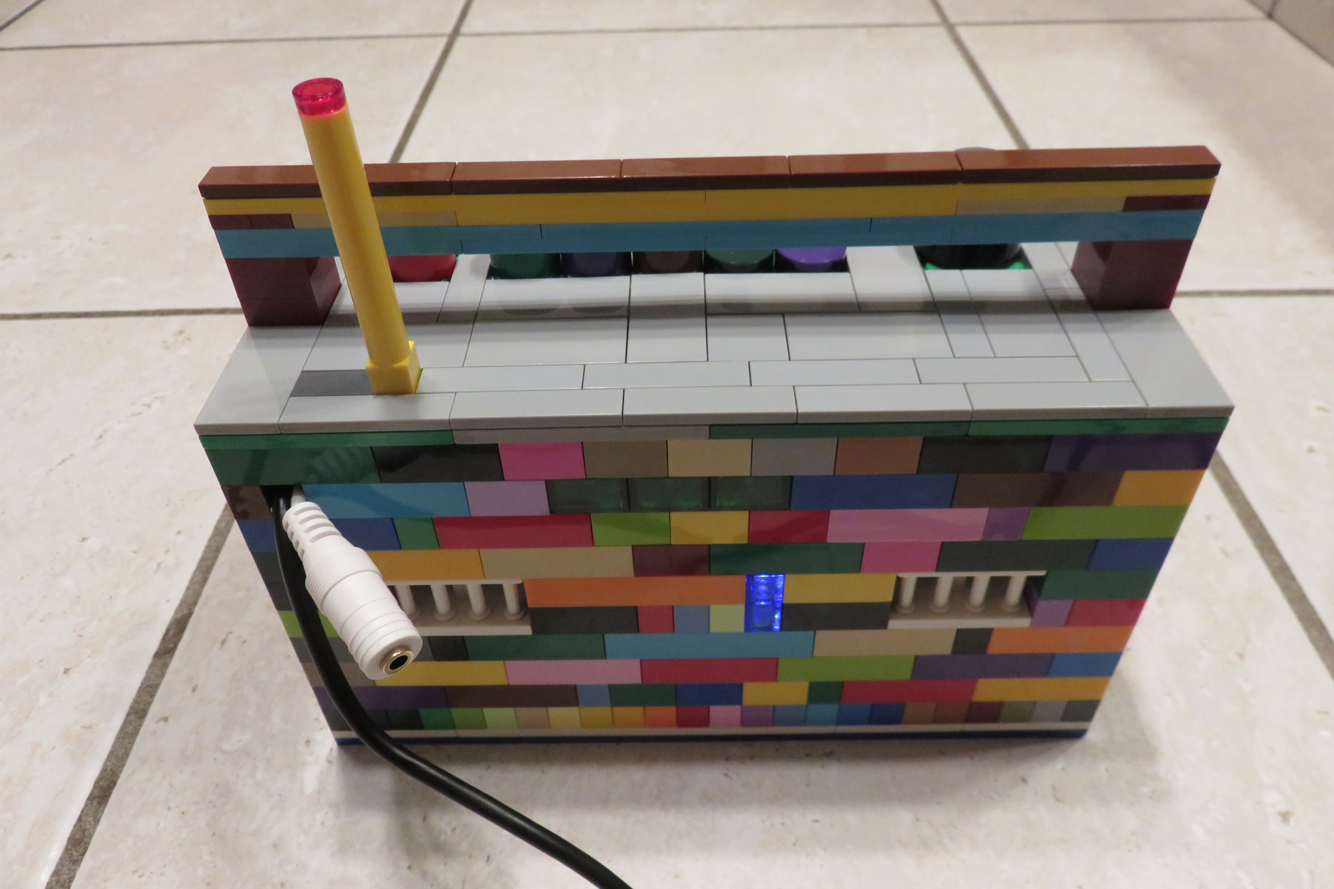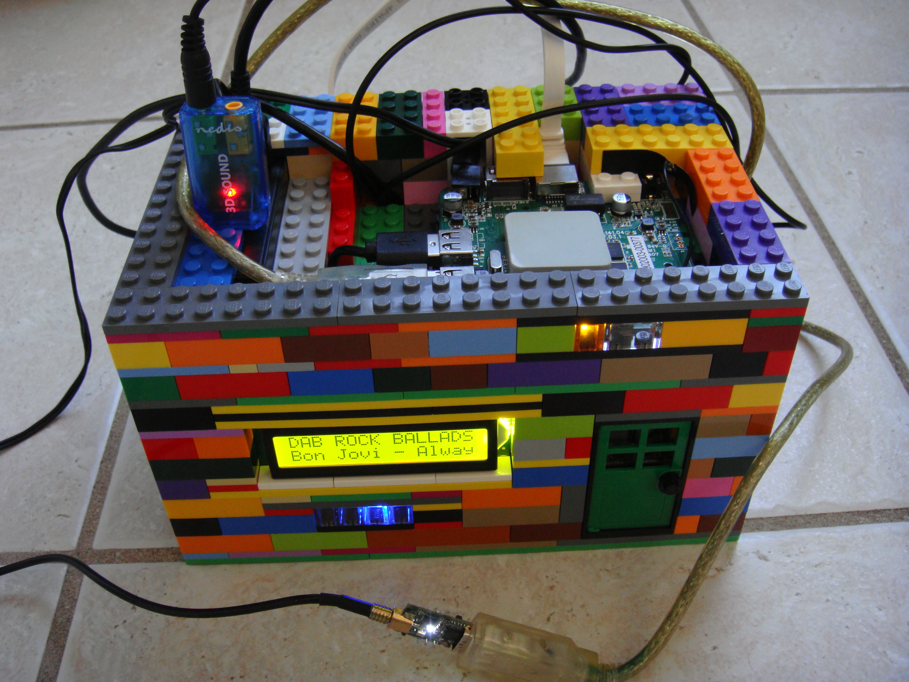 October 2025: Revisiting an older OpenWrt build ... This build wasn't getting much attention so I upgraded it with built-in speakers, an infrared remote to drive the radio easily (thanks to an Arduino nano with IR receiver soldered on it) and DAB! YES DAB on a router, LOL, by connecting to a remote DAB server (the flat LEGO box in the picture), which could be located in a different room / floor, close to the antenna where reception is best. Then the client controls the DAB server and the audio is streamed back to the client. This is all done in the excellent welle-cli software. Latest source in the portable2 folder. |