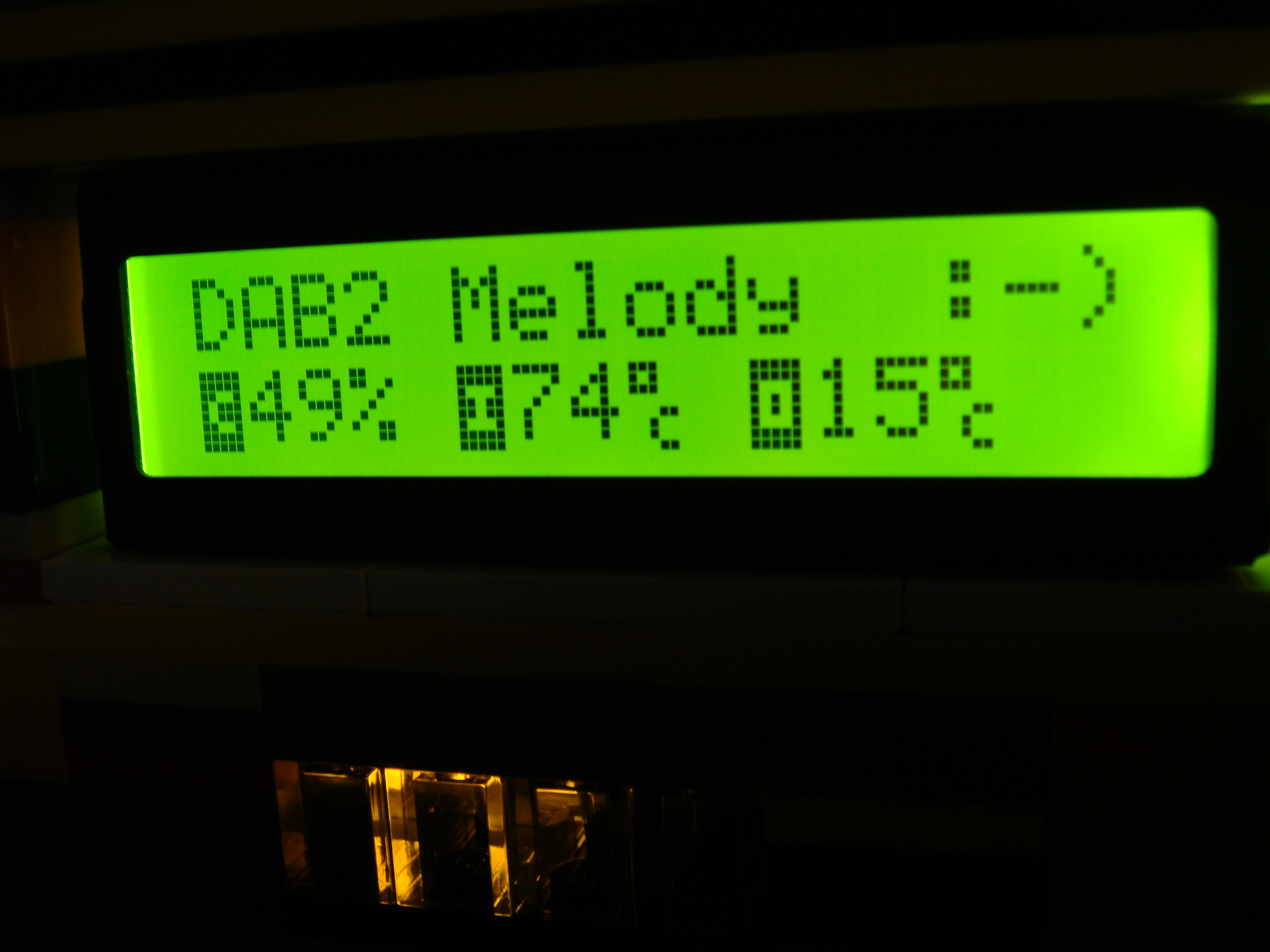 The "NoPi" Radio!August 2023: Built a new radio for the kitchen optimized for DAB reception. Getting over 100 DAB stations here, YEAH!No Raspberry Pi in this one, just a Strong SRT 2023 Android board flashed with Armbian + Ubuntu. I replaced the program dab-cmdline with welle-cli which gives me a better DAB performance. And I can easily show the artist name / song title playing on the 2x16 LCD display. One year later, still using this radio and very happy with it. SWEET! |