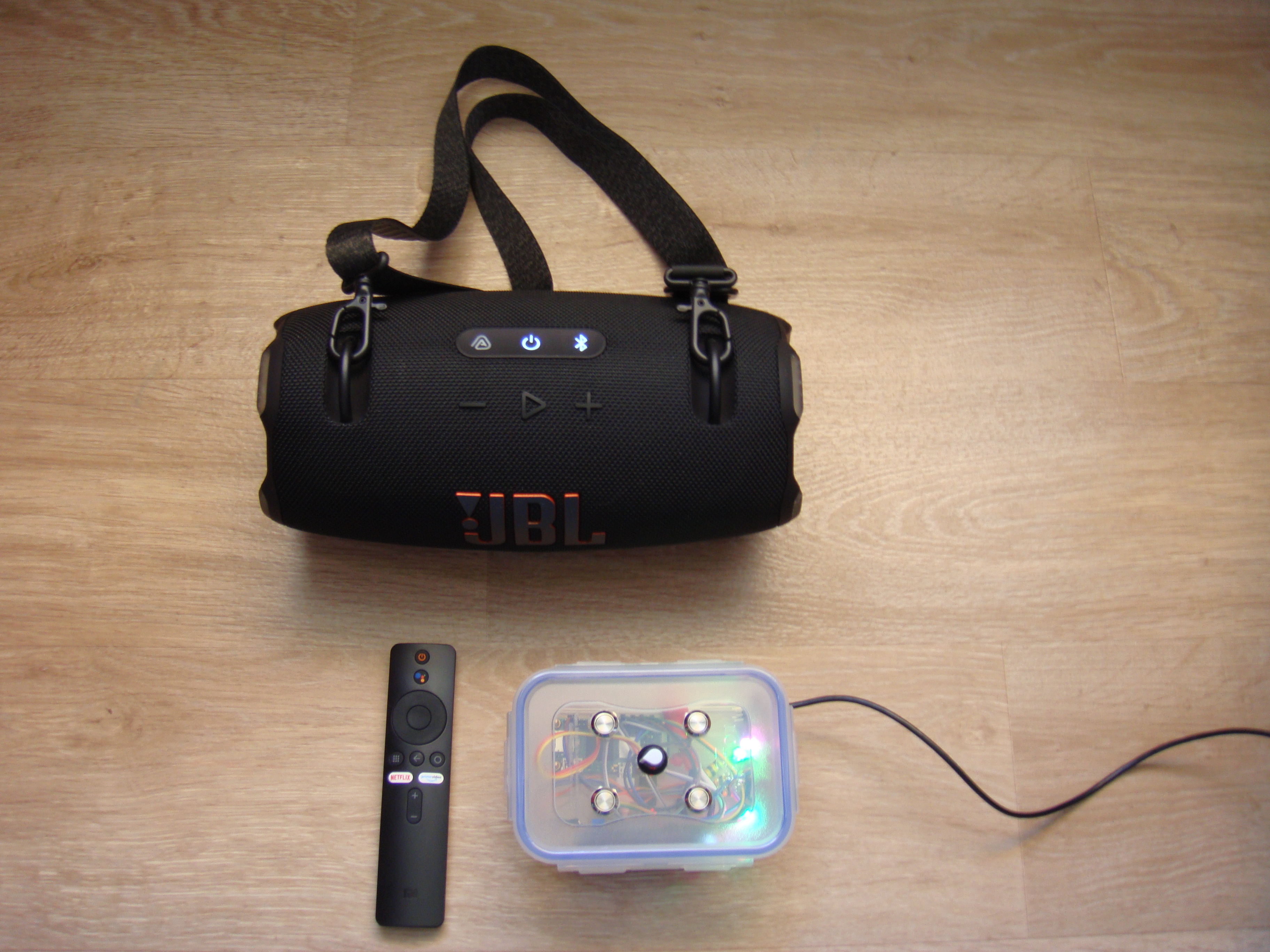 I turned it into a radio (you know me) without speakers because I am sending the audio to some really nice Bluetooth speakers (JBL Xtreme 4) thanks to BlueALSA (https://github.com/arkq/bluez-alsa). I also put four buttons and a knob on top of the radio (what a concept!), all directly connected to the Raspberry Pi GPIO pins; source code is in the bluetooth_audio folder. Small setup, BIG sound :-) |
