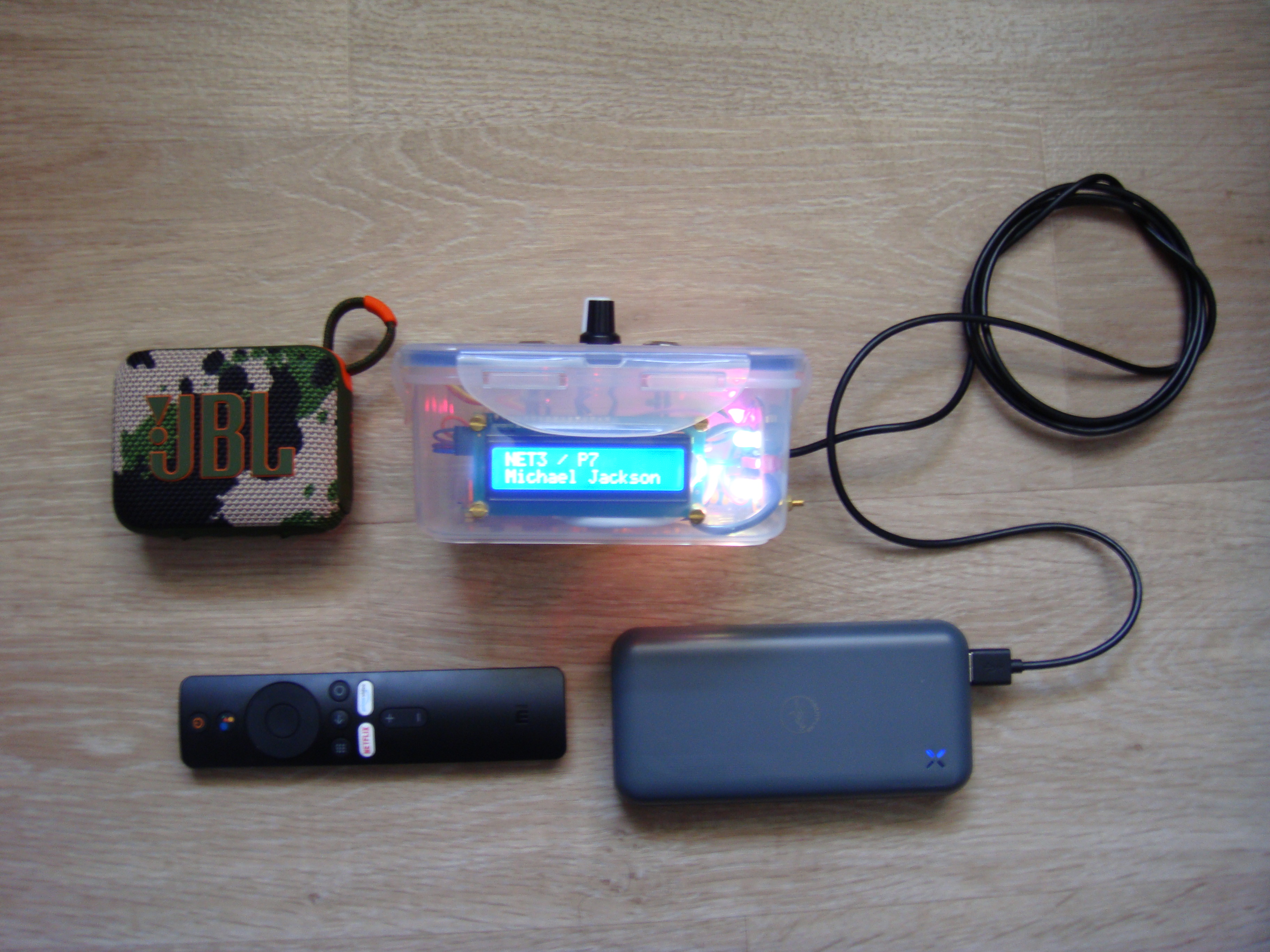 That welcome extra storage allowed me to install additional packages that couldn't possibly fit into the router's flash (python-light for the random mode, espeak / svox for voice announcement and mpg123 to play MP3s). The router can go portable and runs a long time on a 5V 10000mAh power bank. The Wi-Fi coverage is excellent too. Here's the main script: my_radio.sh |