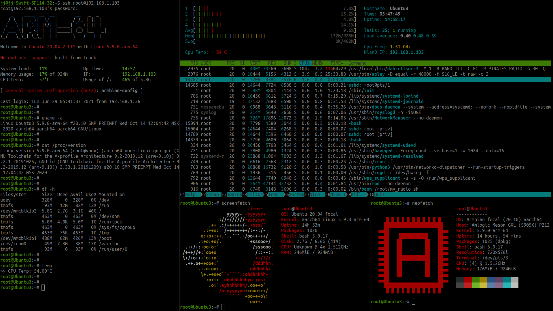 The radio was made from an Android TV box. Thanks to the great work from the folks at Armbian, you can replace Android with Linux, and it's compatible with many types of ARM based devices. My TV box is based on the Amlogic S905X CPU. Perfect way to recycle an older box that was gathering dust! Best of all, the whole system fits into internal storage (eMMC), so no more worrying about messing up your setup and corrupting your fragile micro SD card, when power gets cut for example. |