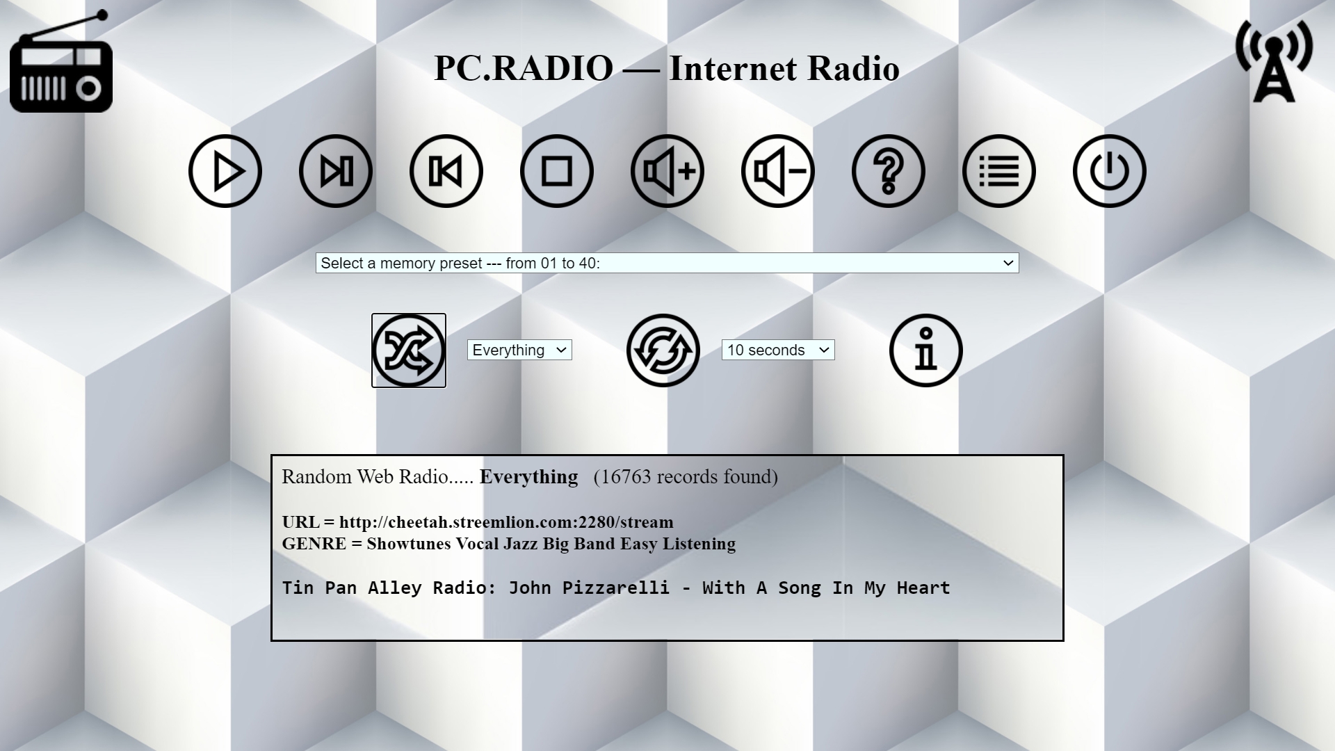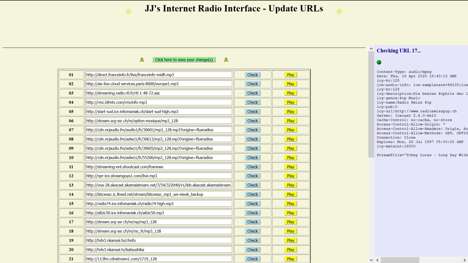 | Just finished porting my little Raspberry Pi internet radio web interface to Windows. I wanted to be able to listen to my 40 favorite radio links + the random by genre feature on my Windows box, standalone and easily. | ||||